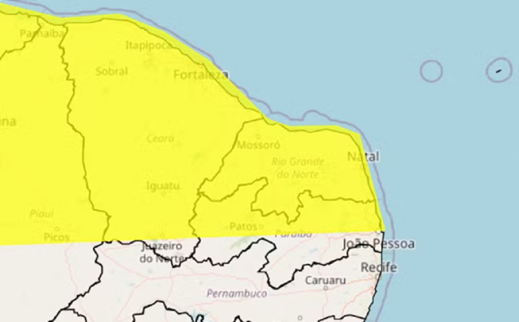 O Instituto Nacional de Meteorologia (Inmet) manteve, nesta quinta-feira (24), o alerta de chuvas intensas para todas as cidades do Rio Grande do Norte. O aviso tem validade até 10h desta ...