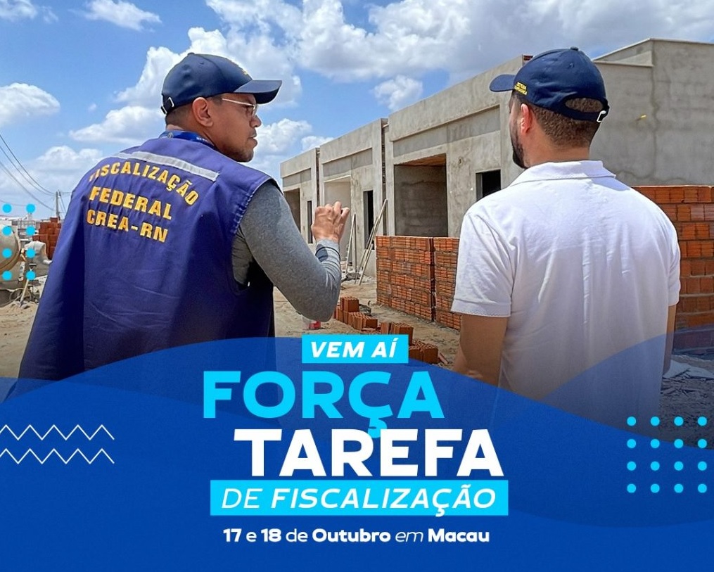 O Conselho Regional de Engenharia e Agronomia do Rio Grande do Norte (Crea-RN) vai realizar nos dias 17 e 18 de outubro, a Força Tarefa de Fiscalização em Macau, incluindo ...