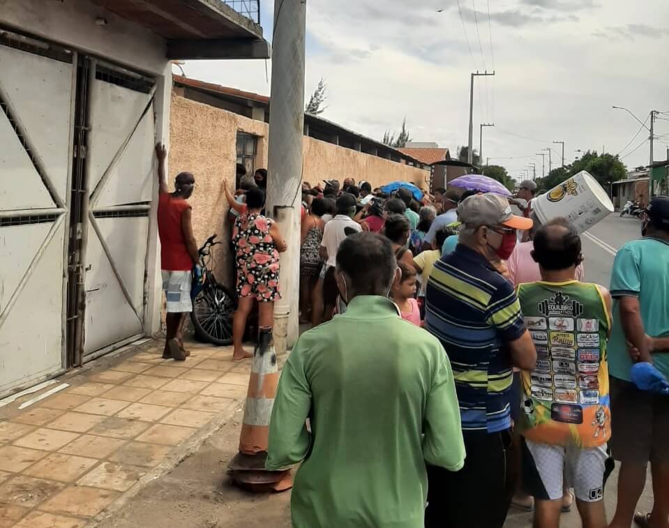 Entrega do leite do governo do estado em Macau; filas enormes para receber.